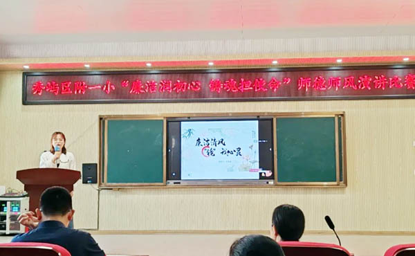 比赛现场气氛热烈、高潮迭起。《爱“廉”说》《与廉政相约》《让廉洁之花绽满校园》……参赛教师以自身经历或身边先进教师的典型事迹,分享在教育工作中践行清廉原则,用爱心和耐心教书育人的感人故事,从不同角度阐述对师德的理解,传递教师职业获得感、成就感和幸福感。