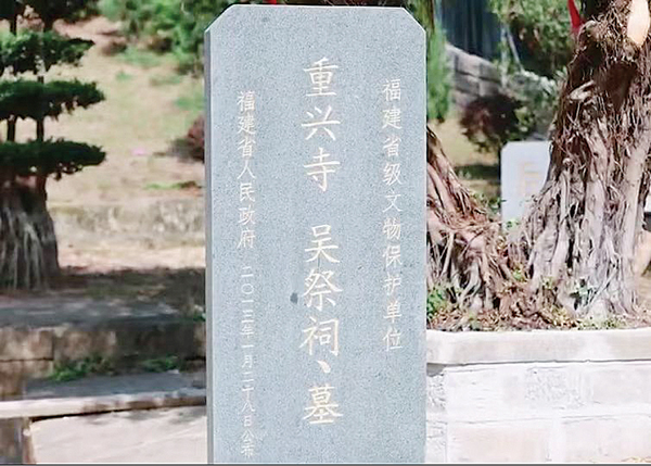 檀越吴祭公墓、祠位于黄石镇重兴北街,始建于一千多年前,祠墓分别建于莆田十八丛林之一重兴寺内东和南侧。吴祭墓前方仍保留有“半月池”。“半月池”是达官的象征,自唐至今,“半月池”的水都不曾断过。据介绍,重兴寺、吴祭祠、吴祭墓都建于唐代,从唐代至清代,都是由吴祭后裔供养僧侣,并由僧人负责看管,这才使得墓祠得到较好的保护。其间,经历过多次重修,因此现今还有宋、明、清三代的建筑风格。吴公祠位于重兴寺内东,经过重兴寺才能进入吴公祠内。其大门祠额上写着“唐工部员外郎吴公祠”九个字,据说是宋代理学大师朱熹的手迹。据悉,在唐朝有个特别的规定,若建寺庙者,可在寺庙内建祠,在寺附近建墓,墓称为“功德墓”,寺叫做“功德寺”。