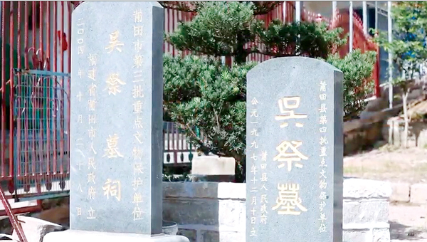 吴祭,字孝先,系中华吴氏始祖泰伯第六十二世孙,约生于唐长庆四年(824),是唐代河南光州固始县人。官居工部屯田员外郎,平章政事兼观察使。史记:“祭居官清廉,勤政为民。”卒于唐天祐四年(907),享年83岁。唐朝后期由盛转衰,吴祭为避战乱,携家眷30余人前往福建建州(今建瓯)、侯官(今闽侯),后又迁莆田北隅灵岩山,再徙居黄石。吴祭为最早入闽开发福建的先贤之一。定居莆阳后,他率民开垦莆田的南洋,开沟挖渠,兴修水利,抚民安民。吴祭出生中原望族,居莆阳后潜心办学,广设书院,教化乡民。宋左丞相陈俊卿赞吴祭:“大哉儒宗,百世仰止,粤从中州,居莆水南,……。”