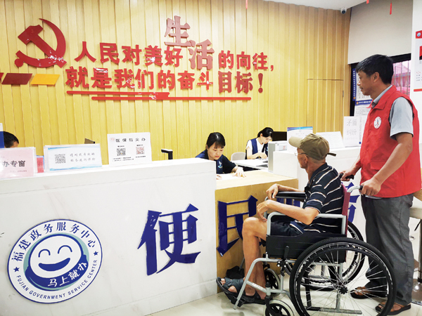 在玉湖新城党建“邻里中心”,记者看到,残疾人张大爷坐着轮椅通过无障碍坡道进入办事中心,来到低位办事台,原本130厘米高的服务台降到了75厘米,让残疾人坐在轮椅上就能签字。“以前我觉得坐在轮椅上出门办事非常不方便,所以平时就很少出门,都是由家人代替。”现在他改变了过去的想法高兴地说:“我感觉莆田的无障碍环境建设得越来越好了,为我们残疾人想得很周到,以后出门方便多了。”