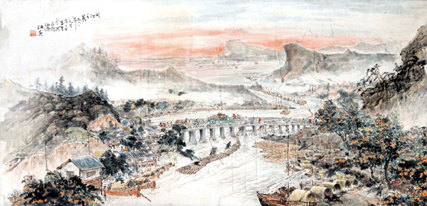 张英也是山水画的能手。因为人物画创作与单纯的山水画创作不同,其人物的意境往往有山水等景物。五代两宋的山水画家如荆浩、关仝、董源、范宽、郭熙、马远、夏圭等,都是将人物与山水互为衬托,所以人物画家绘制山水画,比山水画家更能驾轻就熟。张英的山水画与李耕不同,李耕多绘些家乡的名山胜水,如《仙游四大景》《东圳水库》等,张英不仅创作了《仙游四大景》等山水画,还别出心裁创作了《闽江风光》《武夷之春》等佳作。张英的《闽江风光》系列借福州“三山两塔一条江”的人文景观和自然景观,热情讴歌了闽江两岸的山山水水在中国共产党的领导下所发生的天翻地覆之变化。张英的《武夷之春》系列集中呈现了武夷山的玉女峰、大王峰、九曲溪等风貌。张英的山水画虽然传承了其师李耕的斧劈皴和树木画法,但又兼收并蓄了传统之长,形成了他自己独特的风格特征。所以其《闽江风光》《武夷之春》系列作品的题意都极富诗情画意,此后《武夷之春》《闽江风光》还成为福建美术创作的母题。诸如泉州籍画家李硕卿便创作了《武夷风光》《武夷春光》等作品;张英的同乡、福州大学厦门工艺美术学院院长杨夏林也写生创作了许多武夷山水的作品。