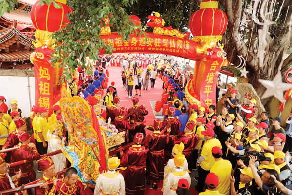 今年9月19日至28日,湄洲妈祖祖庙成功举办为期10天9夜的“瓣香湄洲·福佑兴化”——2023年海峡两岸同胞护驾湄洲妈祖金身巡安莆田活动。这是《意见》发布后,湄洲妈祖祖庙充分发挥妈祖文化在海峡两岸民间交流中的桥梁纽带作用的主动作为,是两岸最盛大的民间文化交流活动,生动演绎两岸同根同源、同文同宗的同胞情。
