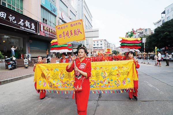 巡安期间,高温天气犹如沿途群众一样热情高涨。参与巡安护驾的队伍中,无论是来自台湾大甲镇澜宫哨角队的80岁高龄队员,还是潮汕英歌队年仅6岁的“小时迁”扮演者,大家都顶高温、冒酷暑,一路紧随妈祖金身巡安的步伐,始终以饱满的热情,倾情表演。