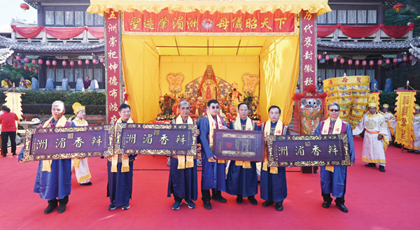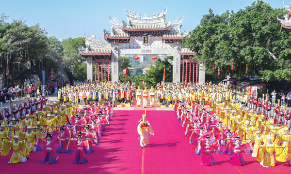 据悉,2023年9月,500余名台湾妈祖文化敬仰者来到莆田,参加十天九夜的“瓣香湄洲·福佑兴化——2023年海峡两岸同胞护驾湄洲妈祖金身巡安莆田”活动。10月23日(农历九月初九)期间,湄洲妈祖祖庙董事会举行纪念妈祖羽化升天1036周年系列活动,超百个台湾妈祖宫庙、妈祖文化机构近千名台胞齐聚湄洲岛,共襄盛会……两岸妈祖文化敬仰者以湄洲岛为平台,通过妈祖文化这座无形却又坚实的桥梁,在一场场两岸文化盛会中构筑起越来越浓厚的“两岸一家亲,闽台亲上亲”的社会氛围。 (周建国 翁志鹏)