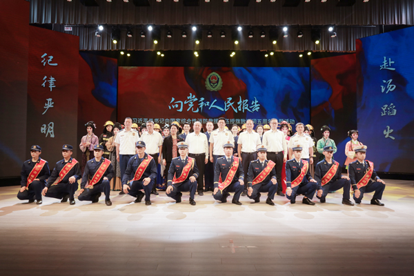 庆祝习近平总书记授旗致训词五周年文艺汇演在湄洲湾职业技术学院立言大礼堂隆重举行。与会领导一同观看了“丹青颂党恩·笔墨倡清廉”廉洁艺术作品展和《高举旗帜 戮力扬帆》践行习近平训词精神成果汇报片。莆仙戏《全民守平安 木兰扬清波》、健美操《橙色力量》等精彩节目连番上演,呈现了广大消防指战员擎旗奋进、书写时代担当的良好风貌以及社会各界力量关注消防公益事业、投身消防公益宣讲的高涨热情。原创消防救援歌曲《誓言》在汇演现场同步首发,用嘹亮、激昂的歌声唱响“人民消防为人民”的红门主旋律,将活动推向了高潮。期间,与会领导为湄洲湾职业技术学院消防应急学院揭牌,并为2023年莆田市“最美消防员”颁奖。