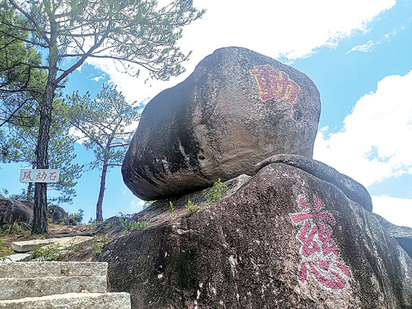 下山的路上,再次经过将军亭,我们特地停车去推一推将军亭后山的那块120多吨的风动石。据说塔山有100多处值得一赏的景观。