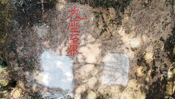 龙潭考察结束后,突然想起九座寺东北的石龛石刻落款亦是“公仪题”,于是即刻前往查看。《仙游县志》载:“伏蟒岩,在九座山,旧有蟒害人,僧智广居此,蟒化而去。”且“上有古藤,紫茎绿叶,密如藓茨”。石刻为篆书“正觉岩,公仪题”。根据陈金添先生所发雁荡山沈公仪题刻,赵贺民老师判断为同一风格,说明沈公仪在九座山共留下了两块石刻。“龙潭祈雨石刻”和“正觉岩石刻”刻于1068年至1070年间。