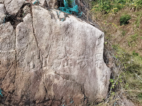 刘章天题刻“上有飞瀑” 陈震辉/摄