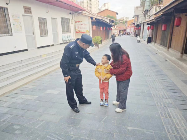 “你好,这有个小朋友在街上一直来回走动,我看他身边也没有什么大人,你们过来看看吧。”12月10日16时许,镇海派出所接到辖区热心群众报警称,在步行街发现一个小朋友一直在来回走动,好像迷路了,需要民警前往救助。