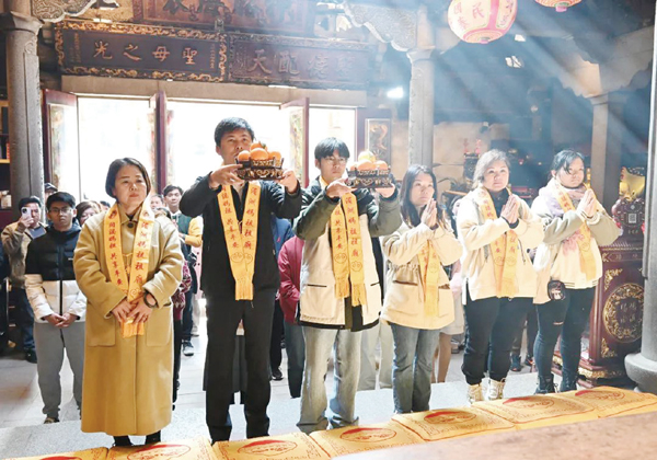 据悉,此次的“台湾青年三创交流活动之妈祖文化研习”团队是由台湾逢甲大学、东海大学、辅仁大学、高雄大学、台北科技大学、美国加州大学台湾分校等青年学子组成,希望通过此行更好地学习妈祖文化,传承妈祖精神。 (时报记者 翁志鹏 通讯员 程黎婷 马冰蓉 周建国)