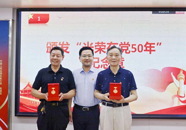 为老党员颁发“光荣在党50年”纪念章