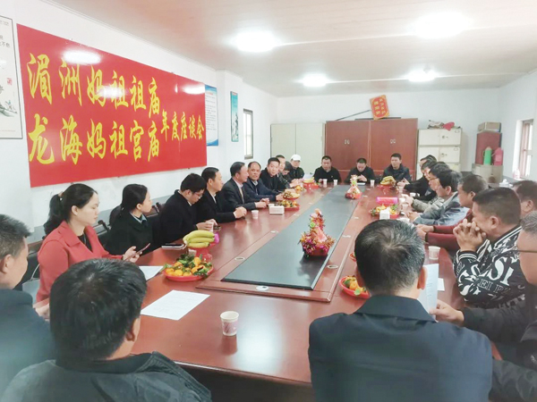 各宫庙代表对祖庙联谊团队的到来表示了热烈的欢迎,对祖庙带来的新年祝福表达了衷心的感谢。各宫庙向联谊团队介绍了宫庙重建、重修和发展方面的重要历程,讲述了宫庙赴湄洲谒祖进香的历史,反馈了当前谒祖进香所面临的问题及困难,现场气氛热烈,大家同话妈祖,畅叙情谊。