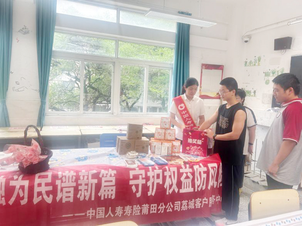 9月8日,为进一步提升青少年金融消费知识,增强青少年金融风险防范意识,弘扬尊师爱生的良好风尚,中国人寿寿险莆田分公司走进莆田第四中学开展“金融为民谱新篇,守护权益防风险”金融知识进校园活动。