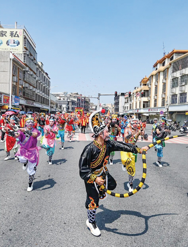 随后,林金赞、周泽荣携海内外妈祖敬仰者从桃溪文化广场出发,参加绕境赐福活动。活动现场,英歌队、标旗队、大锣鼓、腰鼓等民俗阵头绵延数里,无数妈祖敬仰者守候在街道两侧,现场人潮汹涌,热闹非常。