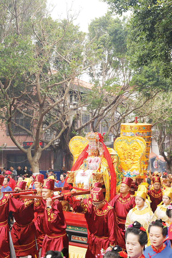今天上午,在众人的簇拥下,妈祖金身将从祖庙正殿缓缓起驾,开始此次为期五天四夜绕境巡安湄洲岛活动。台湾报马仔、湄洲女、英歌队、台湾哨角队、舞龙队、车鼓队等60多支队伍组成的两岸特色民俗阵头,沿着既定的路线进行巡安布福。
