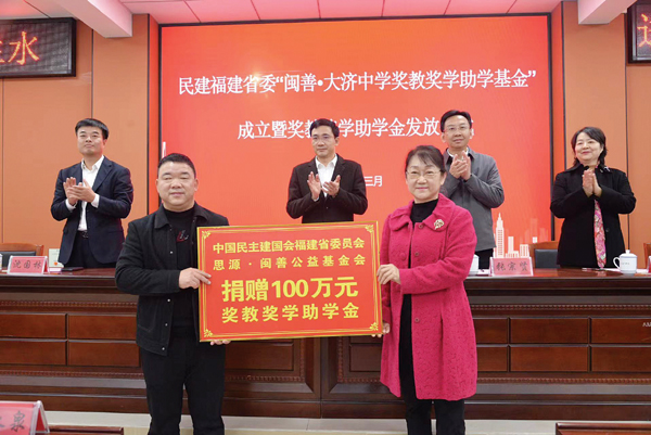 2024年3月15日,为响应中共福建省委统战部同心助推仙游县乡村振兴的号召,民建莆田市委会协助省委会在仙游成立“民建福建省委‘闽善·大济中学奖教奖学助学基金’”。