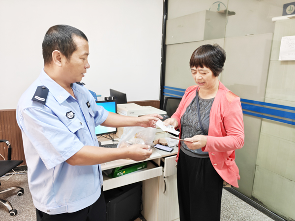 之后,巡逻员将物品带回网格站,借助云平台找到了失主的联系方式并通知其前来认领。经了解,失主林女士是在外出买菜时丢失的,当回家发现包包不见后,四处寻找却无果时。接到巡逻员打来的认领电话,顿时激动不已。林女士对这位热心群众表示了衷心的感谢,同时也对网格员们的工作表示了赞赏,使其避免重新办身份证和银行卡的麻烦。