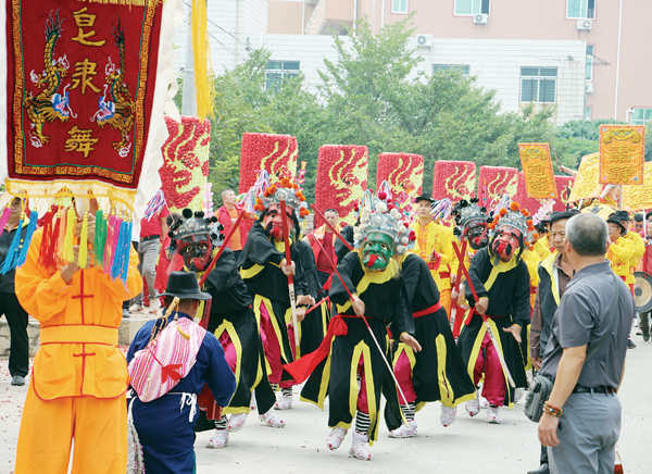 随后,皂隶舞团队又赶赴石狮市蚶江镇水头洪尾龙美龙清堂进行第二场表演。在这里,皂隶舞团队再次以其精湛的技艺和独特的艺术魅力,赢得了观众的一致好评。当地民众专程为看皂隶舞而来,泉州市民许自贤紧跟着皂隶舞队伍,时不时拿起手机拍摄录像,他感慨地说:“第一次看见这样的舞蹈,有一种天人合一的感觉,古朴神秘,像是从远古走来的舞蹈,让人既震撼又心生敬畏。”