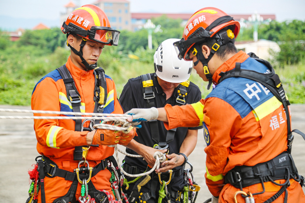 此次培训设置了理论授课、情景模拟、现场实操和培训考核等环节。培训团队就山岳救援及绳索救生技术理论知识进行全方面授课,重点围绕绳索、绳结、锚点知识,绳索救援技术的标准、原理及优缺点等内容进行剖析讲解,从基础的绳结制作、锚点制作、个人装备穿戴到操作性较高的绳索上升下降、高角度担架救援等科目渐进式教学。同时,还依托队站山岳救援模拟设施和辖区资源,最大化构建实战模拟场景,同步开展塔吊救援、楼层救援、竖井救援、桥梁救援等实景环境下实战救援操作,帮助参训学员对山岳及绳索救援技术逐步领悟、稳定提升。