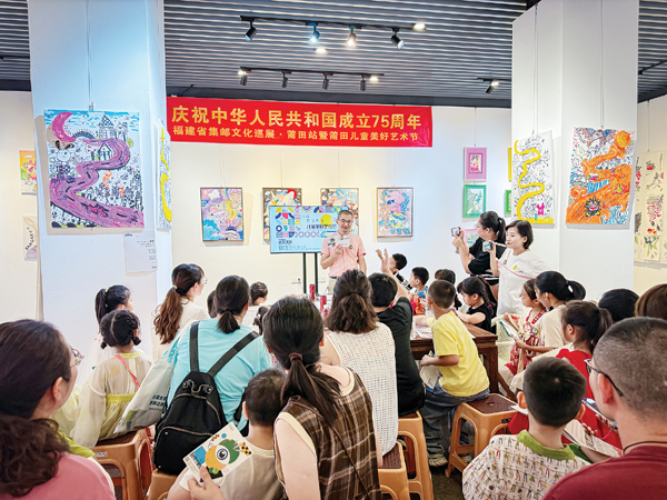 本报讯 “团结凝聚力量,奋斗铸就伟业。莆邮向未来,有您更精彩!”9月7日上午,一阵铿锵有力的口号声久久回荡在市群众艺术馆展览大厅,中华诗词学会海峡诗词研究院常务副院长孟建煌博士、莆田市群众艺术馆馆长宋国平、莆田市河南商会会长余中锋、中国邮政集团有限公司莆田市分公司邮政业务部副总经理李高昭等嘉宾以及上百位小艺术家、集邮者、观众一起见证了庆祝中华人民共和国成立75周年福建省集邮文化巡展·莆田站暨莆田首届儿童美好艺术节开幕式。本次活动由福建省集邮协会、莆田市群众艺术馆指导,莆田市集邮协会、古米艺术儿童美育主办,莆田市河南商会协办。莆田邮政为此发行编号为24-350304-15-0027-000的纪念封片1组2枚,启用纪念邮戳1种。