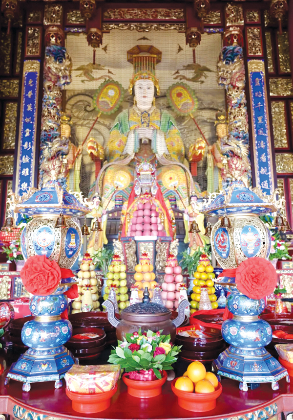 10月29日,景泰蓝妈祖福宫灯捐赠仪式在湄洲妈祖祖庙举行。湄洲妈祖祖庙董事会常务副董事长庄美华陪同涵江区萩芦公主府林金辉、李亚梅、李文销、李文权向妈祖行庄严的三献礼。