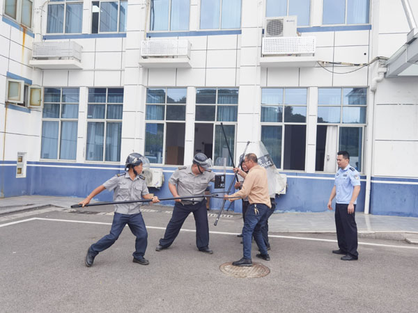 会后,民警向各单位内部安全保卫人员现场示范讲解了钢叉、警用盾牌、警棍等防暴器械的正确使用方法,讲解了反恐防暴工作重点以及遇到暴恐袭击等突发情况如何有效应对等方面知识,随后现场开展了制服暴恐分子、实战模拟演练,各单位安全保卫人员亲身体验了应急处置流程,演练达到了预期的效果。