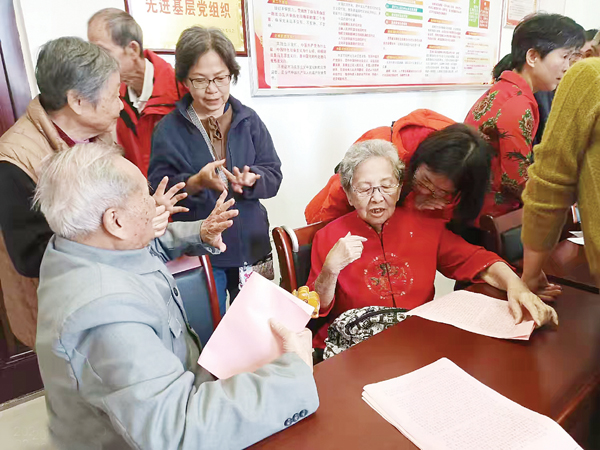 里面有个穿红衣服的阿姨叫林娟娟,满头银发,气质优雅。她说她们全家共有十人回来认祖,目前还没联系上亲属,有点着急。龚玉瑞校长和杨秀兰老师一直在她身边询问线索,帮她理清与家乡亲人的辈分关系。