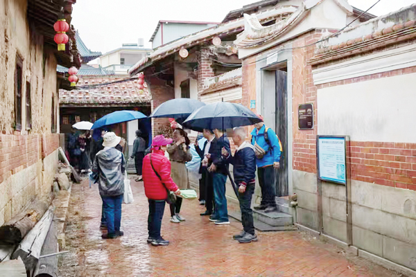 按流程安排,接下来侨胞们在村委献华带领下参观园头核心区下厝里研学基地。因基地面貌改变较大,几位有点年纪的侨胞一直在确认原先他们的祖宅。我无意中听到会长就是这座宅子的主人,又听到献华在问他说祖宅出了个北大校长是不是特骄傲。会长说必须在基地门口合影留念。