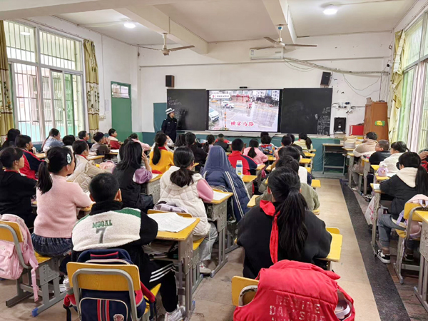 活动中,度尾交警中队宣传民警运用浅显易懂、轻松的语言,通过播放警示教育片,详细讲解了交通事故出现的原因和交通违法带来的危害,教会学生如何安全过马路、如何安全行走、如何安全乘车及安全出行。结合同学们的出行特点,交警叔叔还针对性地进行“一盔一带”知识普及,强调了安全头盔和安全带的重要性,同时通过现场互动问答等形式,教育引导孩子们注意交通安全防护,提醒孩子们摒弃交通安全陋习,从小养成良好的交通安全习惯。(郭明立)