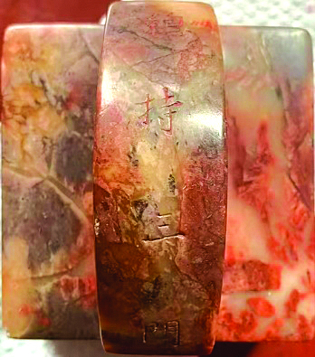 陈衷瑜在扩建过程中,在凿池时意外掘得一块罕见文石,视之为至宝,遂决定将之制成夏教图章。陈衷瑜请来工匠将文石裁成两块,以九叠篆文“儒道释夏之宝”雕成两方宝印。其中一方雕成覆瓦式印纽,顶面刻“总持三门”四字,由瑶岛祠自己保管,作为镇祠之宝。另一方准备作为赠品,故随形雕成,并在印侧刻上“清顺治乙酉岁,瑶岛祠凿池,得一文石,除刻本祠夏教图章外,又刻此印,留以赠有功本祠者。陈衷瑜志”等字,留待以后视情赠于有功于瑶岛祠者。根据上段文字可知文中的“本祠夏教图章”和“此印”即指这两方“儒道释夏之宝”宝印,也就是说,此块文石只刻成这两方宝印。