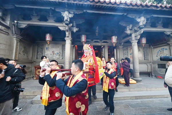 日前,湄洲妈祖分灵京城妈祖文化馆仪式在湄洲妈祖祖庙天后宫举行。湄洲岛党工委书记吴海端、湄洲妈祖祖庙董事会董事长林金赞陪同北京大兴京城妈祖文化馆霍志军等人向妈祖行三献礼。