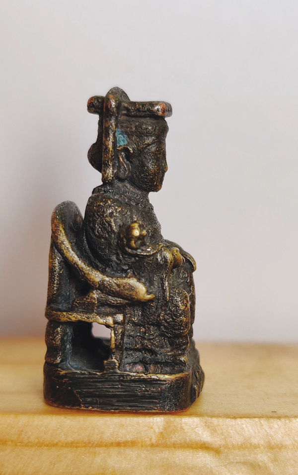 2024年12月10日上午,我来到南山堂,好友翁先生介绍他于近日有幸从日本拍卖会拍得一尊迷你铜雕妈祖坐像,高度仅2.5厘米,比世界第一尊仅3.23厘米高的迷你木质妈祖像还小,令人叹为观止!