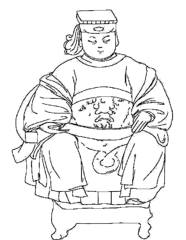 形成一股追求艳丽、慕尚新奇及开放不拘的风潮。明代妈祖塑像承袭明早、中期以来的造像风格,并在此基础上有所变化,写实性与装饰性结合,现实性与理想性统一。明晚期妈祖彩绘木雕坐像如图10所示,图中妈祖仍是头戴无旒冕冠,身穿圆领袍服且饰有蟒纹或龙纹,说明服制规格有所提高。袍服的形制与明早、中期相比,袖子部分收窄,没那么肥阔,双臂绕有的披帛幅宽也变窄呈细条状,胸下系有玉带,凸显出略圆的腰腹。明代妈祖像的手势与手持饰物也较宋代“朝天持圭式”有所改变。这尊明代木雕妈祖像左手放置于左膝上,右手抬至腰部,手中持有的物品已缺失,按其手部姿势,应是将物品搁置于右臂上,由此推断妈祖手中可能持笏或玉如意。