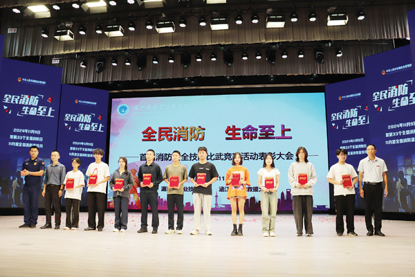 赛项议程结束后,还组织开展涵江区“119”消防宣传月启动仪式。湄洲湾职业技术学院副院长陈金毓,涵江区消防救援大队大队长林发耀等参加启动仪式。湄洲湾职业技术学院保卫处处长蔡明雄作讲话时强调了消防安全的重要性,并呼吁全体师生共同参与到消防安全工作中来。随后,与会领导一起点亮启动装置,共同开启涵江区2024年“119”消防宣传月。