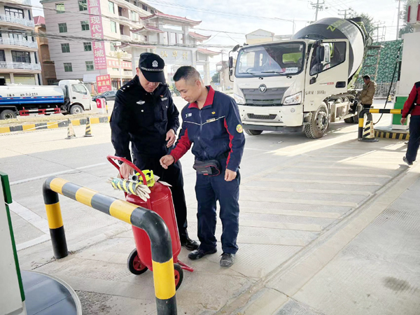本报讯 年末将至,为严防各类安全事故发生,确保辖区社会治安持续稳定,消除辖区安全隐患, 12月24日,盖尾派出所民警对辖区内加油站开展消防安全检查。