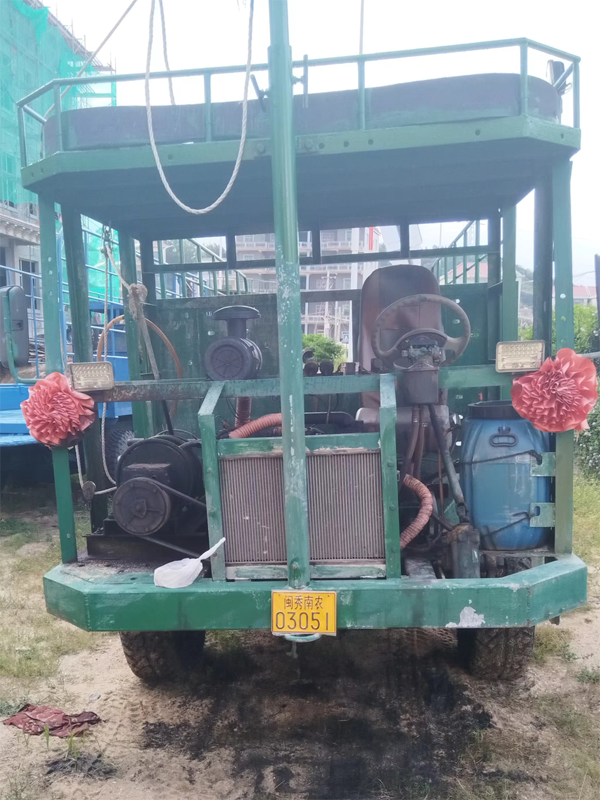 为应对岛内高湿度、高盐分环境对车辆零部件易腐蚀以及海域沙滩地质松软车辆易陷沉等问题,部分渔业养殖人员针对在码头及沙滩上使用的生产车辆进行“特殊”改装,提升其抗腐蚀能力、降低陷沉几率、增大承载量,最终形成现在的轮式生产专用机械车辆(俗称“土炮车”)。