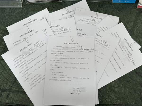 (三)疏堵结合。以警力压路面、宣传压路面的工作机制对“土炮车”违法上路行驶等各类交通违法行为进行严厉打击,对查处的违法案例进行曝光。此外,同步开展交通安全普法宣传,通过现场讲解方式,引导驾驶人或车主主动签订安全驾驶承诺书,强化其交通安全意识与责任意识。