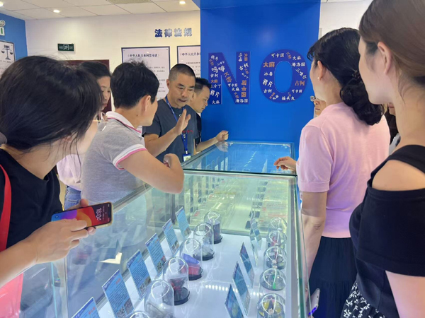 讲解员生动地介绍了禁毒先驱、民族英雄林则徐的禁毒事迹,以及虎门销烟的历史场景,让大家感受到了禁毒工作的艰辛与伟大。之后,参观团走进了专业知识展示厅,通过禁毒图文展板、毒品仿真模型等直观展示,深入了解毒品的来源、种类和严重危害。此外,AR、VR等互动体验设备也让大家身临其境地感受到了吸毒后的危害,进一步增强了大家识毒、防毒、拒毒的意识。
