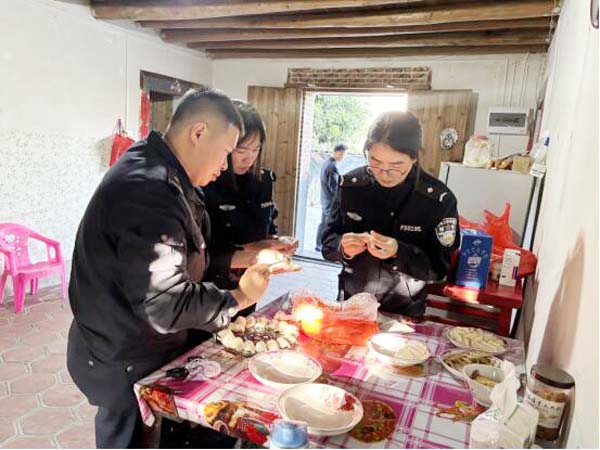 为了拉近与这户家庭的距离,民警们和群众一起动手包饺子,从和面、擀皮到调馅、包制,每一个环节都充满了欢声笑语。在包饺子的过程中,民警们不仅传授了包饺子的技巧,还与小女孩亲切交流,鼓励她勇敢面对病魔,积极接受治疗。同时,民警们还详细了解了小女孩的病情和家庭状况,表示将持续关注并尽力提供必要的帮助。他们为小女孩送去了书籍、玩具等礼物,希望她能够保持乐观的心态,早日康复。
