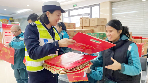 活动中,民警结合年底网购增多、快递员工作量大等特点,通过面对面宣讲、发放宣传资料、以案说法、视频讲解等方式,向快递员分析了电动车未戴安全头盔、逆向行驶、随意变更车道、骑行接打电话、闯红灯、乱停乱放等交通违法行为的危害性,提醒快递员在行驶过程中自觉遵守交通规则,抵制危险驾驶行为,做到“配送再忙,安全第一”。同时,教育引导快递从业人员汲取交通事故教训,呼吁大家树立交通安全意识,文明守法出行,将快递顺利送到客户身边的同时,也把安全“邮”给自己、“递”给他人,共同营造安全、有序、文明的道路交通环境。并为快递从业者们送上新春礼品、及新春祝福。(郑斌斌)