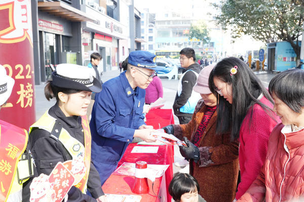 “城区内禁止燃放烟花爆竹”“千万不能在家中或楼道内焚香祭祀,外出要做好三清三关”……宣传过程中,返乡大学生志愿者及消防安全宣导员以“面对面”形式用通俗易懂的语言向过往的人员、周边居民群众讲述禁放烟花爆竹注意事项,并结合冬季用火用电量增加、取暖设备使用频繁和节日祭祀习俗等特点,细致讲解了如何安全使用取暖设备、家庭日常防火注意事项和灭火器的正确使用方法等消防知识,并发放防火宣传单页和福字窗花,营造了良好的宣传氛围。(时报记者 林锦堂 通讯员 卓丽清 陈斌)