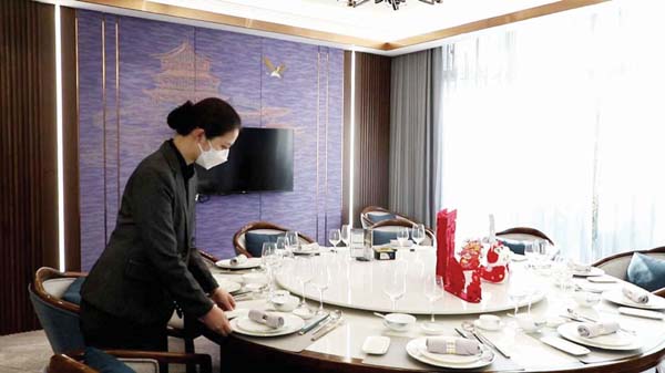记者在采访时看到,各大酒店大厅处处充满着“新年”的味道,工作人员正忙碌着接待一批批前来预订年夜饭的客人。