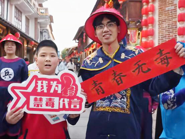 活动现场,实践队成员们有的扮演林则徐,手举“青春无毒”横批,目光坚毅,告诫众人滥用麻精药品的严重危害;有的扮演士兵、女侍协助“林则徐”向游客们宣讲麻精药品有关知识;其余成员则紧随游行队伍,向过往游客分发宣传单,展示毒品模型,积极向游客普及毒品知识。
