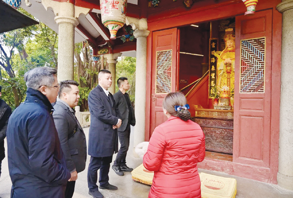 1月11日下午,柬埔寨妈祖联合会会长陈柏安一行赴湄洲岛参访交流。
