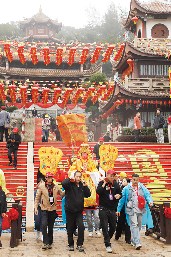 “一年一度的天下妈祖回娘家活动,目前已经在热火朝天进行中。其实早在农历正月开始就有各地妈祖宫庙进香团队自发陆续回来谒祖,截止目前,跟我们祖庙取得联系的进香团大概有230多个,人数近50000人,与往年相比,今年的进香团队人数多、规模大,时间也比往年更早,今年是妈祖诞辰1065周年,预计会有更多的妈祖宫庙回来……所以,我们首次把启动仪式设在天后广场上举行,到时候现场还有很多非遗民俗表演,向各地妈祖敬仰者、游客展示一个非常传统又热闹的民俗盛宴。”湄洲妈祖祖庙董事会办公室主任林群华说,“在今年纪念妈祖诞辰1065周年活动期间,还将举行三月廿二守夜庆诞辰、春祭妈祖大典以及‘和平之树’落成剪彩等仪式,此外,从农历三月初五开始,每天都将有数十支各具特色的民俗队伍在祖庙表演,持续至妈祖诞辰日(农历三月廿三),呈现出‘日日有活动,天天有节目’的非遗民俗盛宴,让各地妈祖敬仰者、游客更深入了解妈祖文化和大爱精神。”