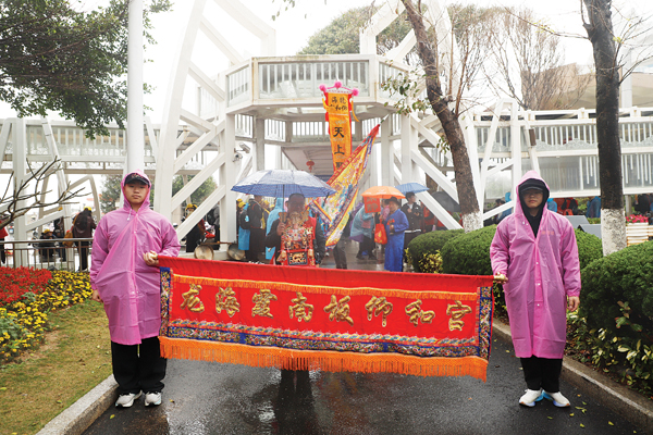 农历乙巳年三月廿三是妈祖诞辰1065周年纪念日,随着日子的临近,各地妈祖宫庙纷纷组织进香团赴湄洲妈祖祖庙谒祖进香,再掀天下妈祖回娘家热潮。3月15日至16日,来自台湾、广东深圳、汕头、潮州以及福建省内的漳州、泉州、仙游、平潭等近30个妈祖宫庙进香团队,总人数约20000余人,陆续抵达湄洲妈祖祖庙,参加天下妈祖回娘家活动,受到湄洲妈祖祖庙董事会的热情接待。即使天公不作美,也依然无法阻挡妈祖敬仰者的热情和回家的脚步。一路上,各进香团队的特色民俗阵头吸引了众多游客驻足观看、拍照。