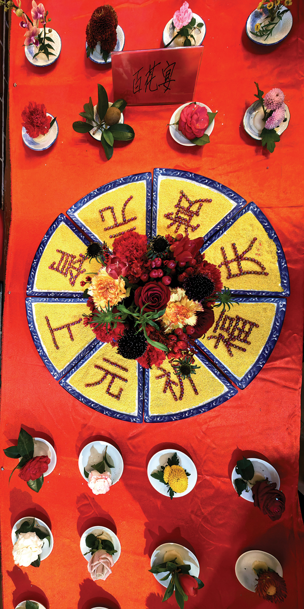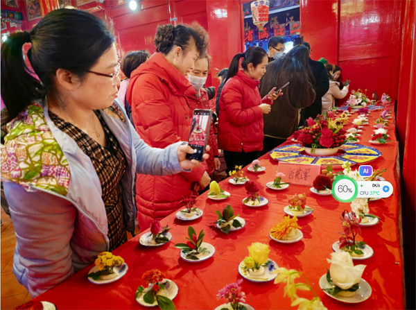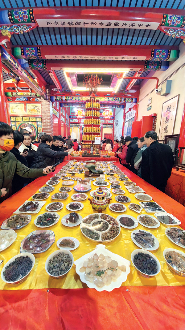 除了令人称奇的妈祖蔗塔,延宁宫在元宵佳节还精心准备了烛塔、百花宴和“满汉全席”奇石宴。烛塔,烛层垒砌,烛光盈盈,愿新岁顺遂安康。百花宴上,万紫千红汇聚一堂,芬芳四溢,宛如自然谱写的盛世华章;奇石宴里,一桌桌“佳肴”并非人间烟火所烹,而是鬼斧神工的奇石演绎的舌尖奇幻盛宴。