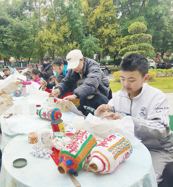 此外,利用中国优秀传统文化渊源,运用“非遗”禁毒文化进行熏陶。在老师的“添丁进财”、“丁”与“灯”谐音一致等谆谆教导下,家长和孩子们兴趣热情地制作出了“使命、禁毒、破毒黑、逐光明、国泰民安、平安健康”等灯笼,亲手描绘出了禁毒愿景。(肖国成)
