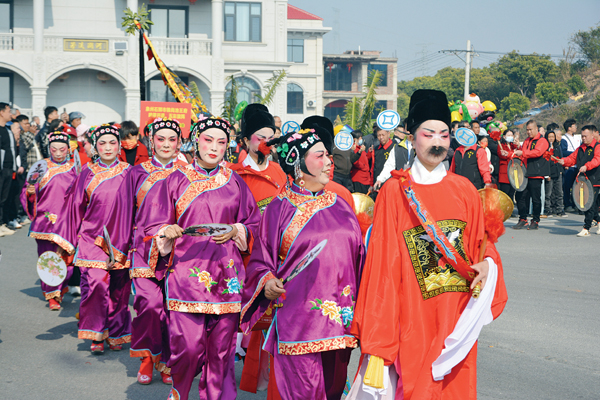 2月17日,农历正月二十,“五帝巡游皂隶开道闹元宵”活动在城厢区灵川镇东进村精彩上演。