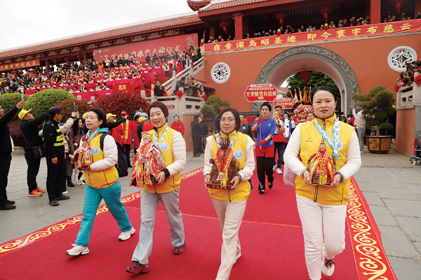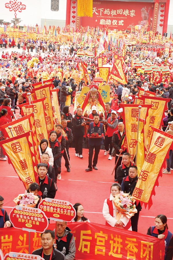 “‘天下妈祖回娘家’,是人类非物质文化遗产妈祖信俗的核心所在,更是全球妈祖敬仰者心心念念的盛事。据不完全统计,今年农历正月以来,已有438团,共计78万多人次的妈祖敬仰者从四面八方齐聚湄洲岛谒祖进香。”湄洲妈祖祖庙董事会董事长林金赞说,“下一步,祖庙董事会将矢志不渝地坚守传承妈祖文化的初心,全力以赴推动妈祖文化的传承与发展,在海内外各界人士的不懈努力下,妈祖文化一定能够在新时代绽放出更加绚丽的光彩,为增进民族凝聚力、促进世界和平与发展发挥更大的作用,作出更为卓越的贡献。”